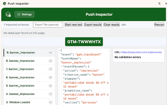 Push Inspector, Google Tag Manager (GTM) ve GA4 ile çalışan geliştiriciler ve analistler için tasarlanmış bir Chrome eklentisidir. Bu araç, dataLayer olaylarını anlık olarak izleyip doğrulama yapma imkanı sunar. Kullanıcılar, canlı olay izleme, JSON şeması doğrulama ve detaylı hata raporları gibi özelliklerden yararlanarak, GTM uygulamalarını daha etkili bir şekilde test edebilirler.
